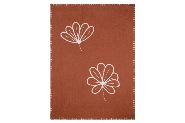 Die kuschelige rostfarbene Decke aus 100 % Baumwolle ist schön leicht mit 330 g. Praktisch für unterwegs und zu Hause. Größe: 75 x 100 cm.