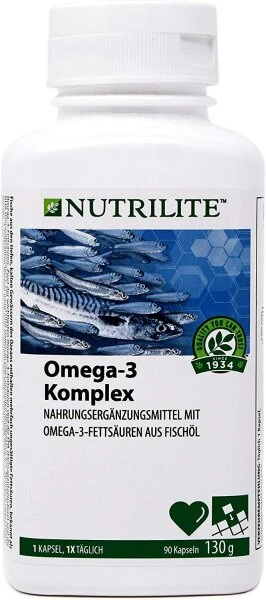 - Nutrilite™ Omega-3 Komplex enthält eine Mischung von Omega-3-Ölen, die wir von unserem Nutricert™-zertifizierten Partnerbetrieb beziehen. Darunter Lachs aus den reinen Gewässern Norwegens sowie Sardellen, Makrelen und Sardinen aus dem Atlantik und Pazifik.