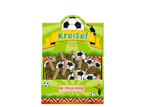 Kreisel in zwei coolen Designs: Fußball und Spirale.